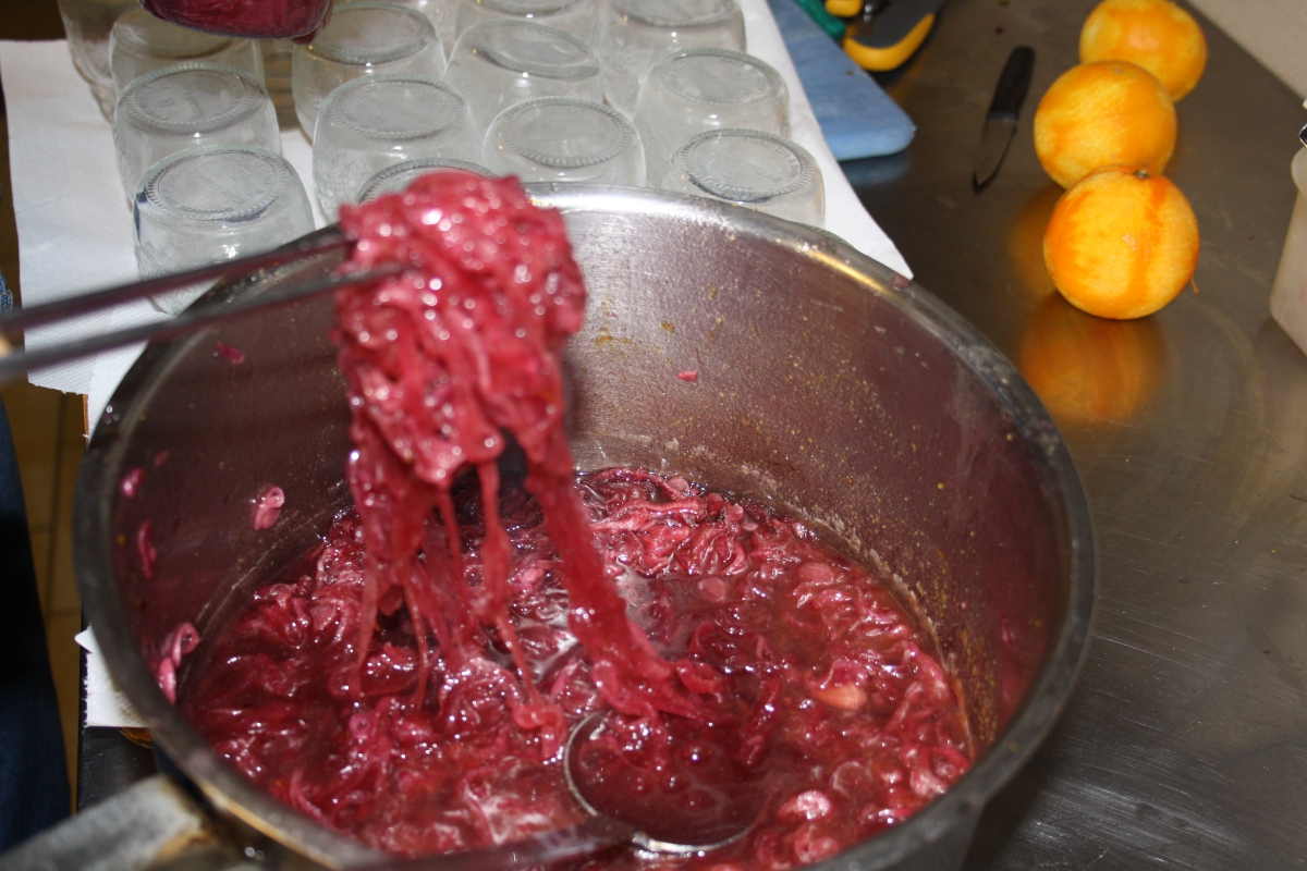 Una volta deciso che sia pronto, togliete dal fuoco, prendetene un buon romaiuolo da tenere a parte e aggiungete al resto, le cipolle. Lo sciroppo tolto ci serve per unire la senape in polvere ma, siccome col calore si aggruma, lo freddiamo, mescoliamo la senape e amalgamiamo il tutto col il resto, aggiungendo della scorza di arance grattate. Ho messo un peso orientativo della senape perchè non so quanto piccante vi piaccia, se poi volete aggiungere pinoli e uvetta... Questa mostarda è notevole con i lessi e certi tipi di formaggi. Se vi piace potete farne dosi più considerevoli, la quantità di lacrime aumenta di poco, mettendola a caldo nei barattoli sottovuoto e tappandoli a dovere.
