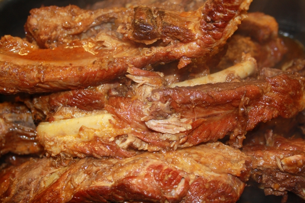 Girate di tanto in tanto mentre il liquido evapora cedendo il passo ai succhi della carne, ci vorrà ancora 40 minuti. Tirate su la carne, ora dovrete togliere le ossa e qualche calletto vagante, tritandola a coltello e rimetterla nel tegame dove continuerà a cuocere per 20/30 minuti finchè per consistenza, non "assomigli" ad un ragù.